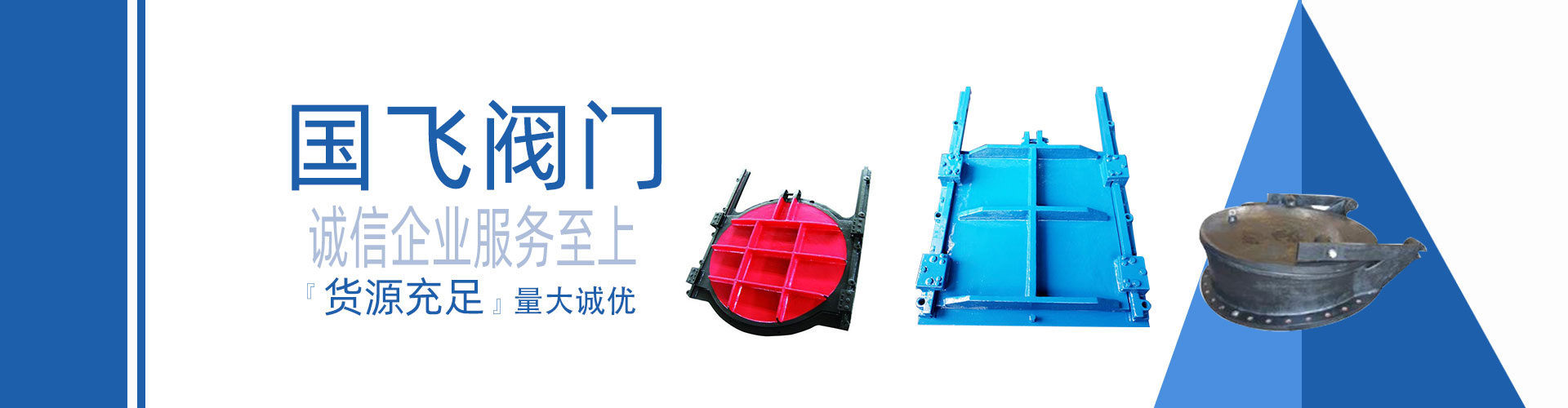 浙江國飛閥門科技有限公司坐落于擁有中國閥門之都”美稱的永嘉甌北,是集中開發(fā)、設(shè)計、制造、銷售為一體的科技型企業(yè),現(xiàn)主要生產(chǎn)的產(chǎn)品有污水處理閥,不銹鋼渠道閘門、不銹鋼拍門、錐形閥、鑄鐵鑲銅閘門、電動通風蝶閥、泄爆閥,配水閘閥,套套閥,浮筒閥,插板閥,電磁閥,燃氣緊急切斷閥,不銹鋼電磁閥,高爐煤氣閥、電力閥、石化閥配套和特種非標閥等10大類;產(chǎn)品廣泛應用于石油、化工、冶金、建材、市政環(huán)保、制藥、電力等行業(yè)。
